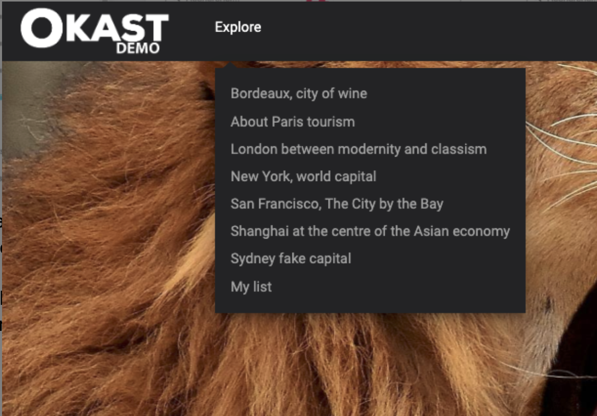 Le header affichera dans l’ordre les éléments qui composent la Smartlist choisie. Lorsqu’il n’y aura plus de place pour les afficher, elle affichera un menu « explorer » avec l’ensemble des contenus.