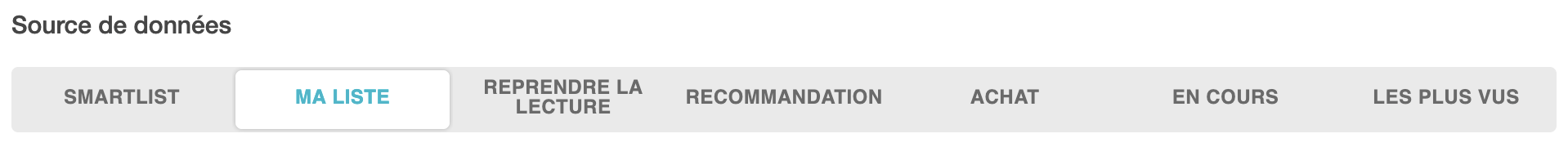 A noter : ces Smartlists personnalisés sont dynamiques, donc si aucun contenu n’est ajouté dans « Ma Liste » ou si aucun contenu n'est en cours de visionnage, alors les composants ne s’afficheront pas sur votre plateforme.