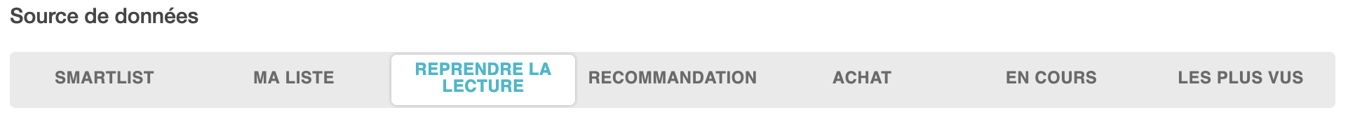 Vous pouvez créer 2 types de Smartlists personnalisées ; Ma liste et Reprendre la lecture.